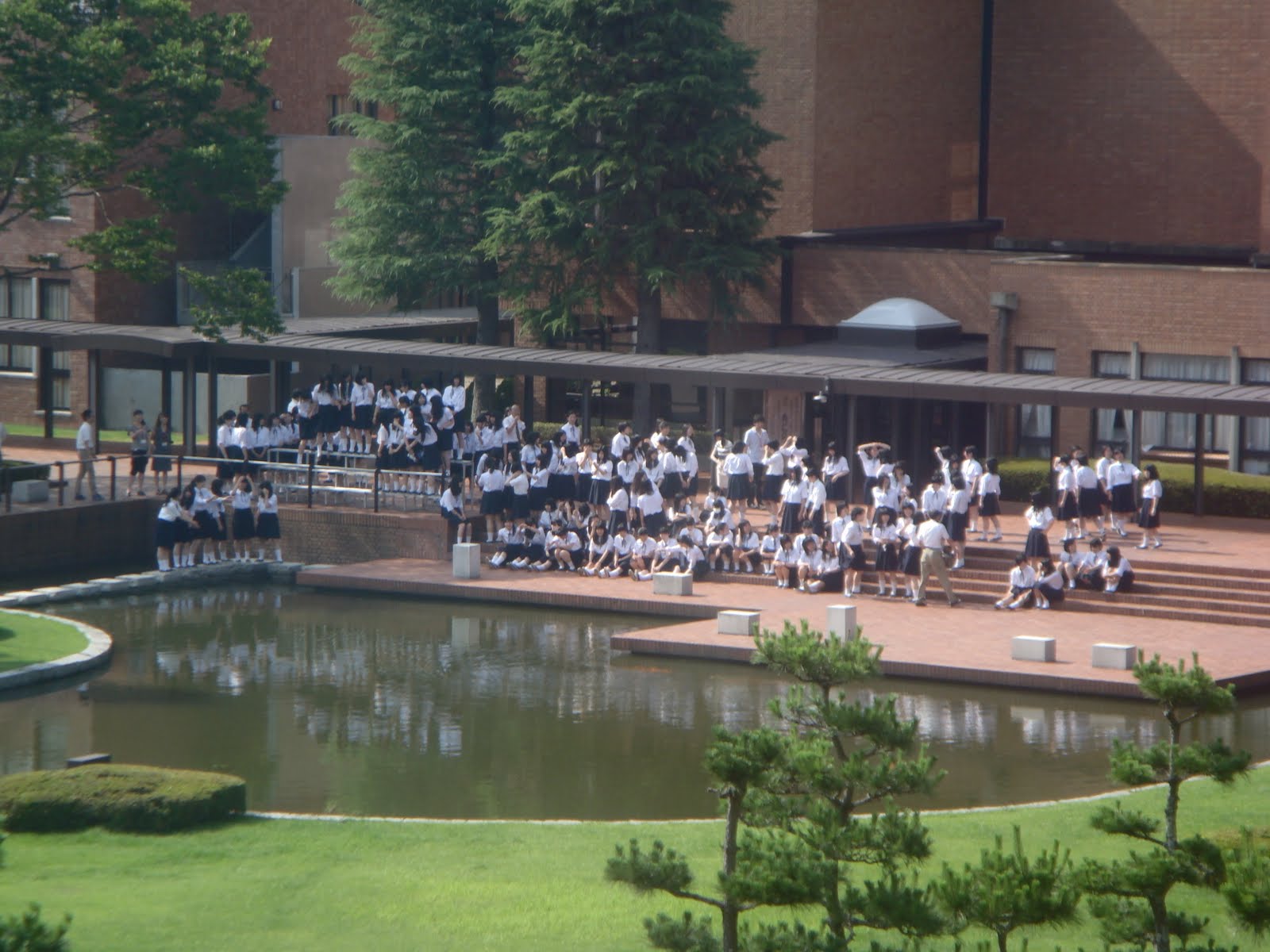 At Miyagi Gakuin U, I looked out of the window and saw the high school students lining up for a group photograph. As with any large group, the teachers were having trouble getting people to pay attention and stay in the right spots.