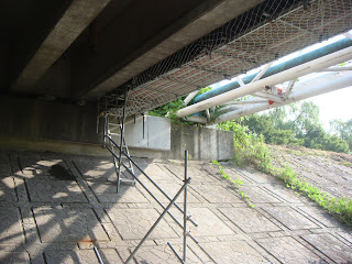 It looks like they are finally doing a little repair work under the bridge. In talking to the inspector from the construction company that has the contract for upkeep on my condo complex, I learned that all such companies are having problems. First, they do not have enough trained people to do all the inspections, to write proposals and then contracts, to get the necessary materials (many of the factors were destroyed and the remaining ones are having trouble finding raw materials and power), and to find enough construction workers.
